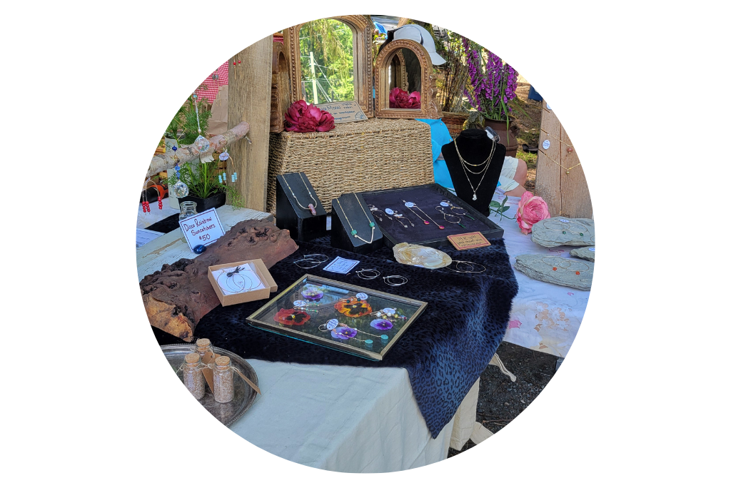 Gold & silver jewelry, herbal teas, salves, and candles.